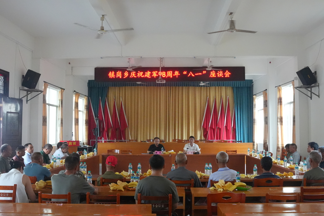 追忆峥嵘岁月,共谋振兴发展。镇岗乡组织召开“八一”座谈会,乡党政主要负责人向全乡退役军人、军属、烈士亲属致以节日的祝贺和亲切的慰问,座谈会上大家齐聚一堂,追忆峥嵘岁月,共叙鱼水之情。参会代表们纷纷表示,在以后的工作和生活中,继续努力,为家乡乡村振兴添砖加瓦。